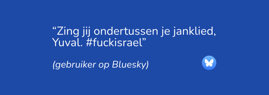 Enfin, ik had de euvele moed om er een berichtje op Bluesky aan te wijden. Nogmaals foei, stout. Want als zij-die-zich-de-moeder-deugen ook maar dénken dat je pro-Israel bent, dan zijn de rapen gaar. De eerste reactie? “Zo benieuwd of deze vrouw wel akkoord is met het stelselmatig verkrachten van Palestijnse gevangenen. Dat is namelijk een van de zaken waar de demonstranten tegen ageren.”